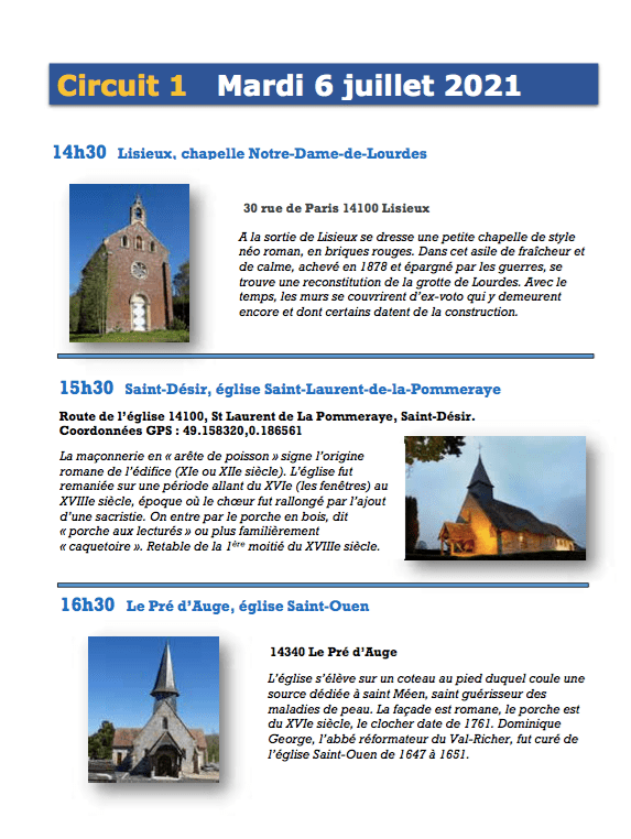 3 juillet 202116 juillet 2023Mariette Meunier Le circuit n°1 – mardi 6 juillet 2021 – Lisieux/Saint-Désir/Le Pré-d’Auge