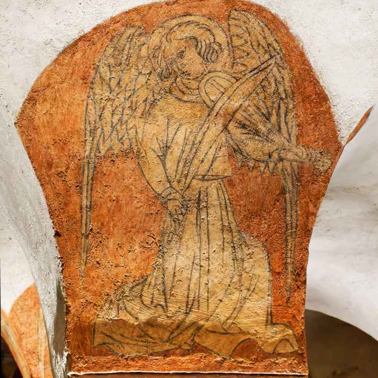 Vous avez sans doute remarqué qu’à l’APEPA, nous aimons les anges, les merveilleux anges qui éclairent nos visites d’églises avec leur grâce, leur beauté, leur espièglerie parfois, et toujours leur mystérieuse aura, Voici les anges musiciens de la crypte de la cathédrale de Bayeux.