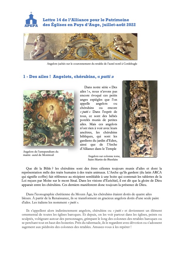 Pour la prochaine Lettre : si vous voulez bien nous communiquer les informations dont vous avez connaissance concernant « votre » église, nous les partagerons dans notre Lettre, et aussi sur les réseaux sociaux et sur notre blog. Plus l’information circulera, et plus ce patrimoine attirera l’attention. On aime ce que l’on connaît et on protège ce qu’on aime…