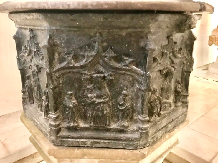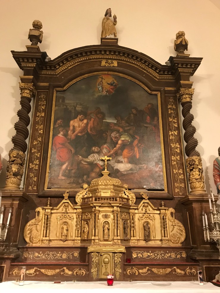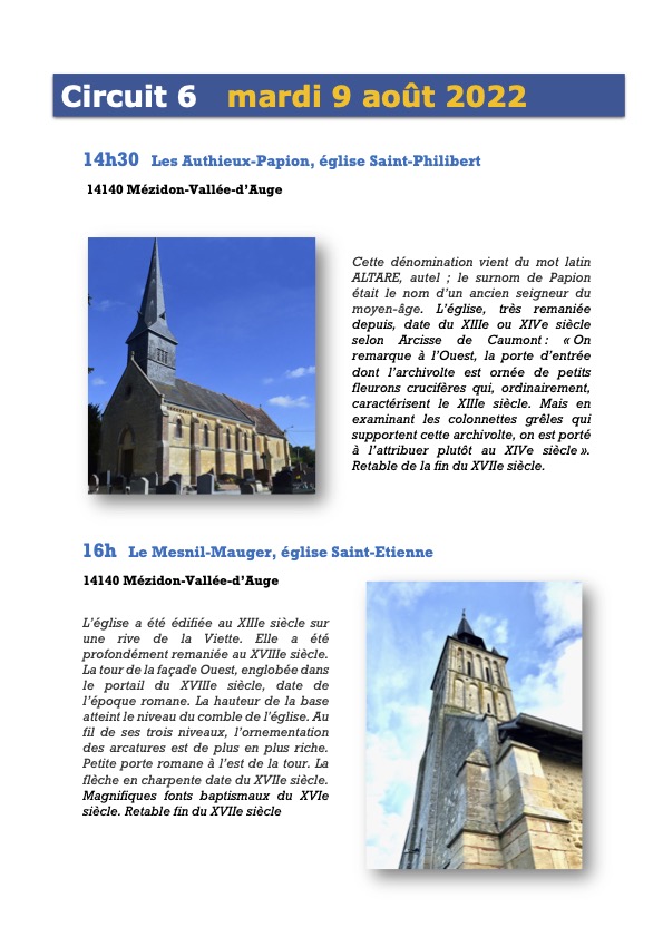 Mardi 9 août, le circuit de l’Alliance APEPA commencera à 14h30 à l’église Saint-Philibert des Authieux-Papion. L’église possède un beau retable de la fin du XVIIe siècle, avec un tableau central représentant une Déploration. Le retable est surmonté de deux anges adorateurs, de part et d’autre d’un cartouche avec le monogramme du Christ IHS. Puis à 16h nous visiterons l’église de Saint-Etienne du Mesnil-Mauger, avec sa magnifique tour romane et ses fonts baptismaux du XVe siècle. L’église possède également un retable de la fin du XVIIe siècle, avec un tableau central représentant la lapidation de saint Etienne. L’écrivain Philippe Déterville nous fera dans l’église une présentation des églises romanes du Pays d’Auge.