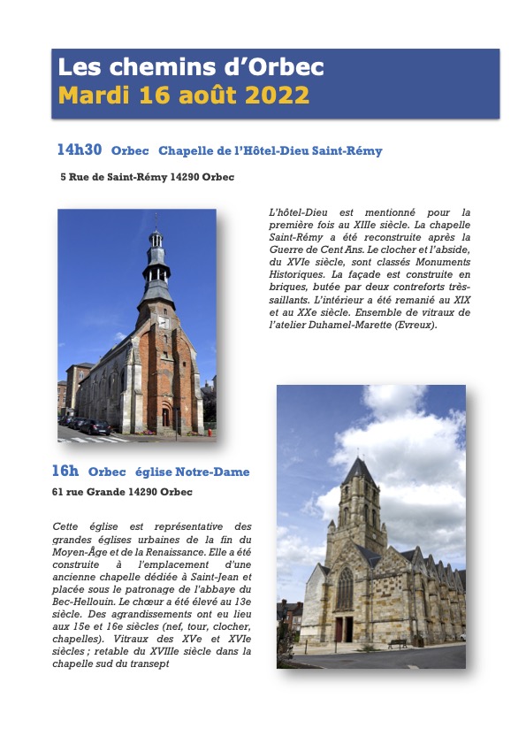 Mardi 16 août, l’Alliance APEPA vous donne rendez-vous à 14h30 devant La chapelle Saint-Rémy pour une visite guidée. Après quoi, visite de l’église Notre-Dame à 16h, après une courte marche à pied dans la ville.