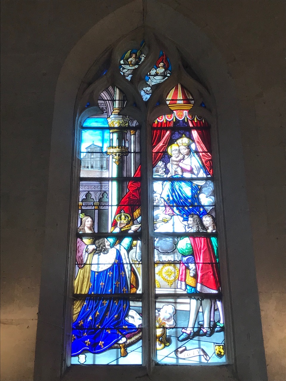Vitrail : Le voeu de Louis XIII, consacrant la France à la Vierge Marie
