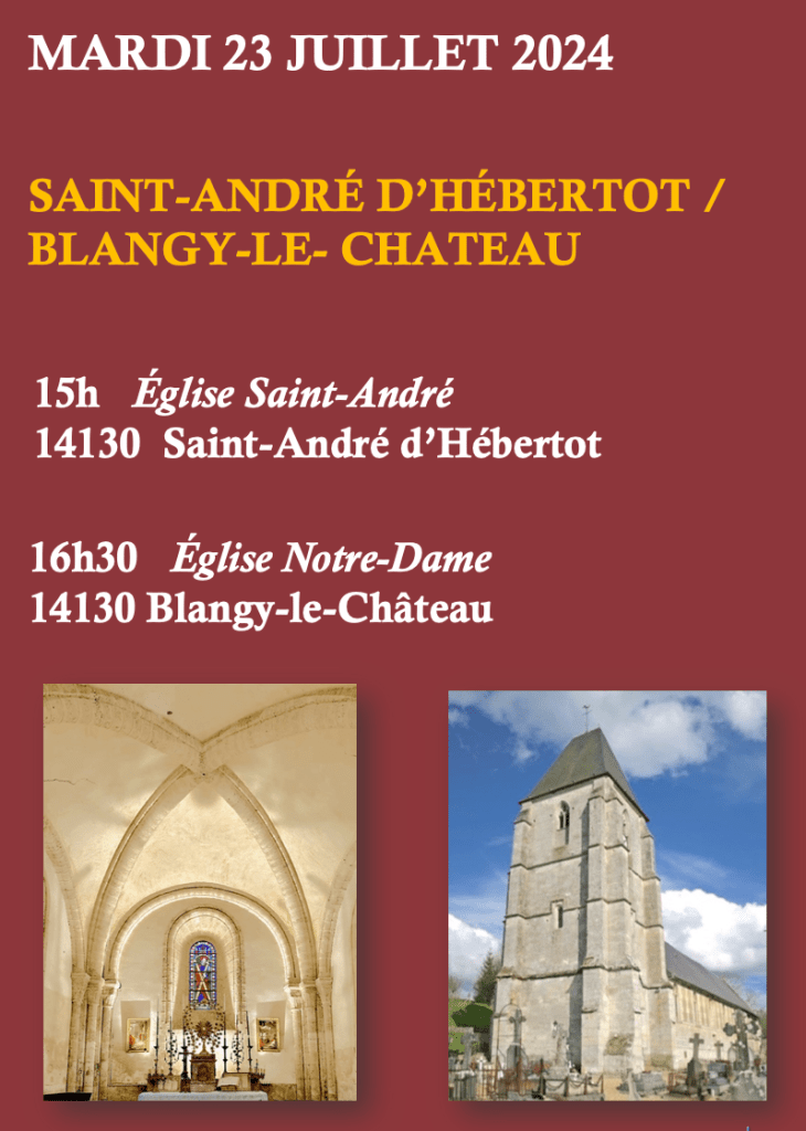 23 juillet 202423 juillet 2024Mariette Meunier Les mardis des petites églises – mardi 23 juillet Saint-André-d’Hébertot et Blangy-le-Château