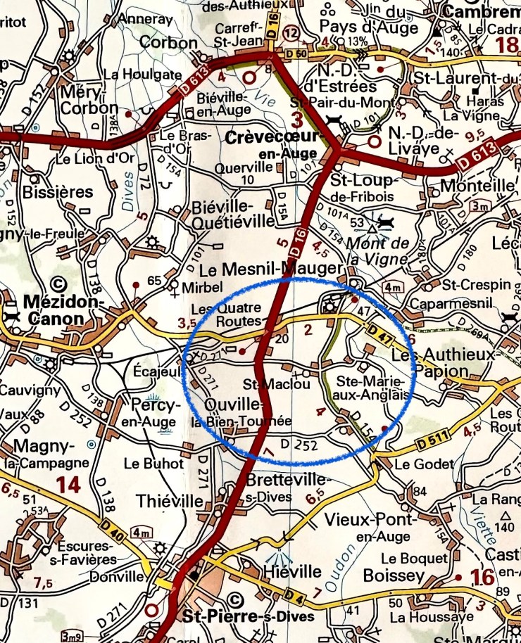 l’église se situe sur une hauteur qui domine la plaine de St-Pierre-sur-Dives au sud et la vallée de la Viette au nord. Le méridien de Greenwich passe à quelques mètres, à l’ouest de l’église.