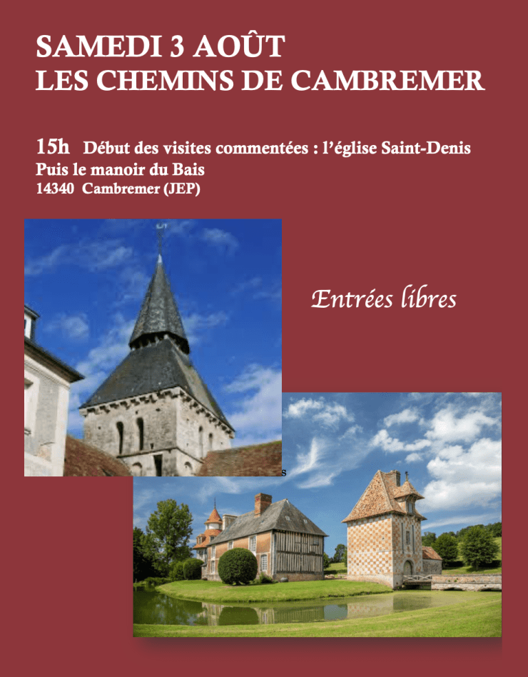 Pour aller de l’église. Saint-Denis au manoir du Bais, vous aurez le choix : faire tout le chemin à pied (2,6 km) ou bien ne marcher que 300m. Toutes les explications vous seront données à la fin de la visite de l’église.