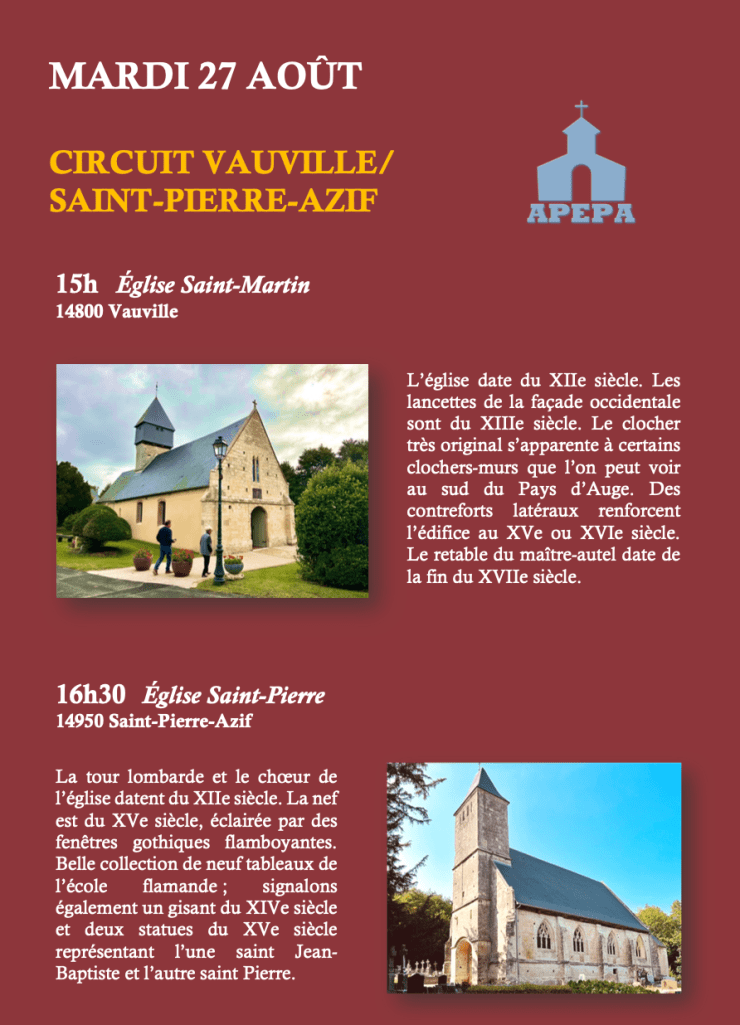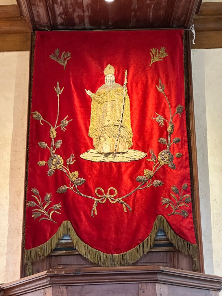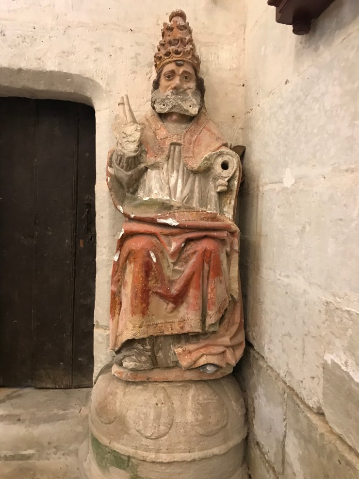 26 août 202429 août 2024Mariette Meunier Les mardis des petites églises – mardi 27 août – Vauville/Saint-Pierre-Azif le clocher de Vauville Vauville : la bannière de saint Martin Saint-Pierre-Azif : Saint Jean-Baptiste terrassant Hérode, XVe siècle Saint-Pierre-Azif : saint Pierre, avec la tiare à trois couronnes, XVIe siècle