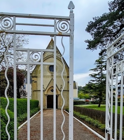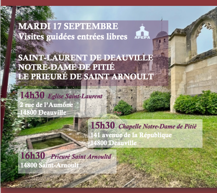 Avant d’aller à Saint-Arnoult, nous vous proposons une halte à la petite chapelle Notre-Dame-de-Pitié, ouverte toute l’année et appartenant à la communauté des franciscaines. Les vitraux sont du peintre verrier Duhamel-Marette.