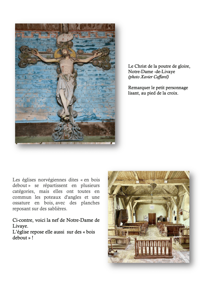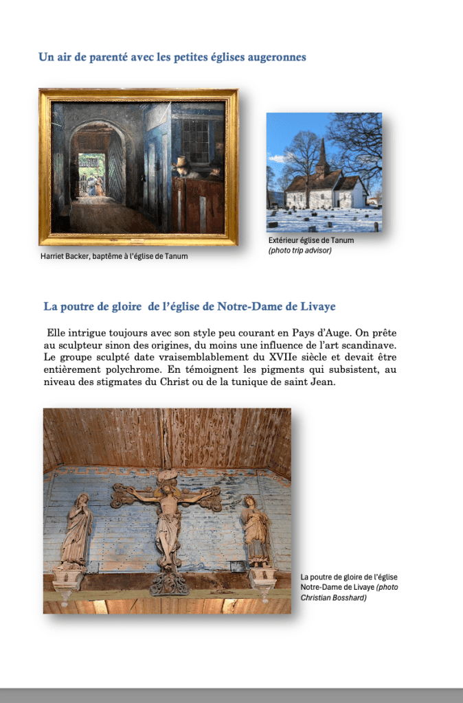 Le thème de cette Lettre s’est imposé après une visite de l’exposition de tableaux de la norvégienne Harriett Baker (1845-1932) au musée d’Orsay. Ses tableaux d’églises évoquent certaines petites églises du Pays d’Auge. C’est l’occasion d’émettre une hypothèse sur la provenance de la remarquable et mystérieuse poutre de gloire de l’église Notre-Dame de Livaye.