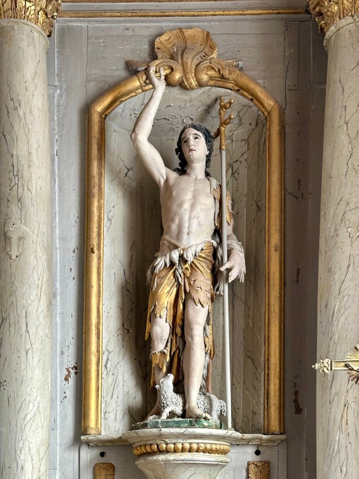 Jean-Baptiste et ses attributs : la croix et l’agneau