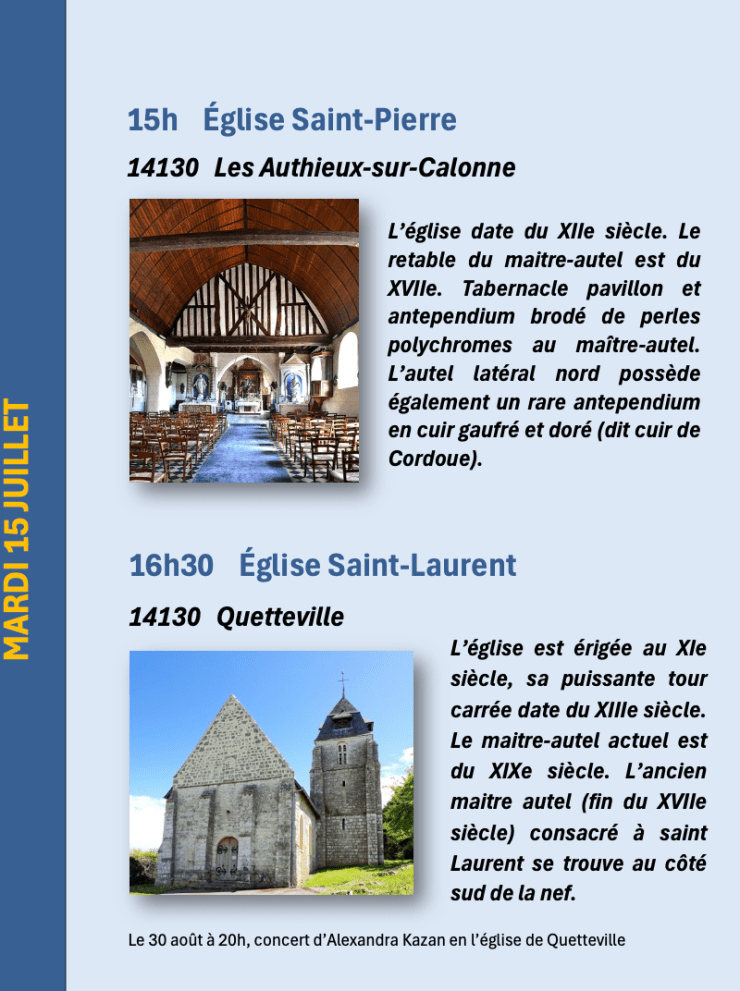 A l’église Saint-Pierre des Authieux-sur-Calonne, on peut admirer deux magnifiques devants d’autel ou antependiums) l’un en broderie, l’autre en cuir doré dit »de Cordoue », car sa technique de fabrication provient d’Espagne.