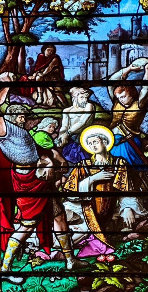 L’histoire du patron de l’église, Saint Martin, est relatée dans la nef côté nord alors que le côté sud relate l’histoire de Saint Etienne, deuxième patron de l’église.