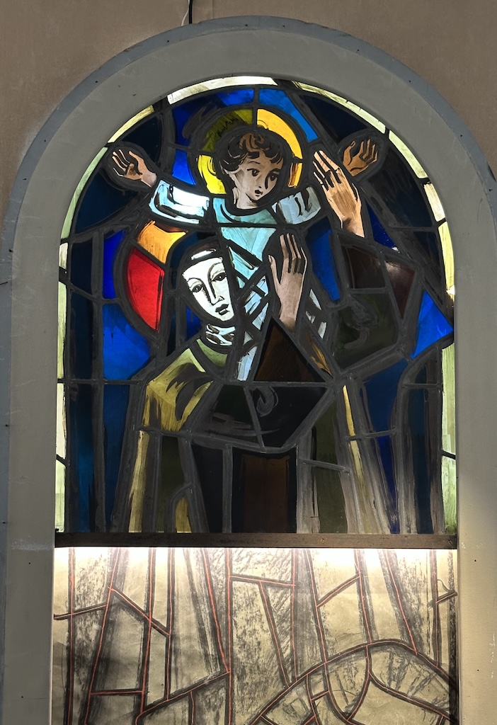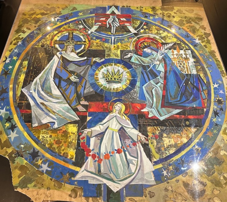 On découvre dans les dessins préparatoires pour des vitraux et des mosaïques tout un univers formel et symbolique remarquablement expliqué. Voici quelques souvenirs de cette exposition :