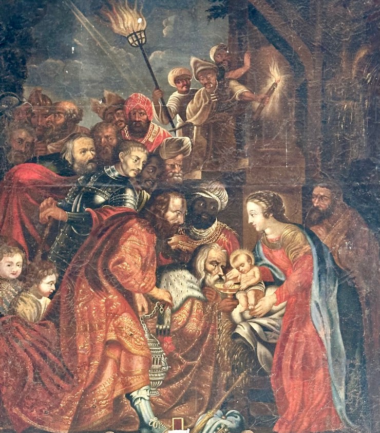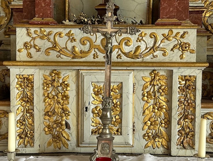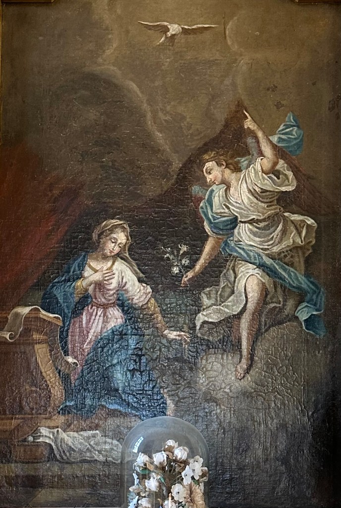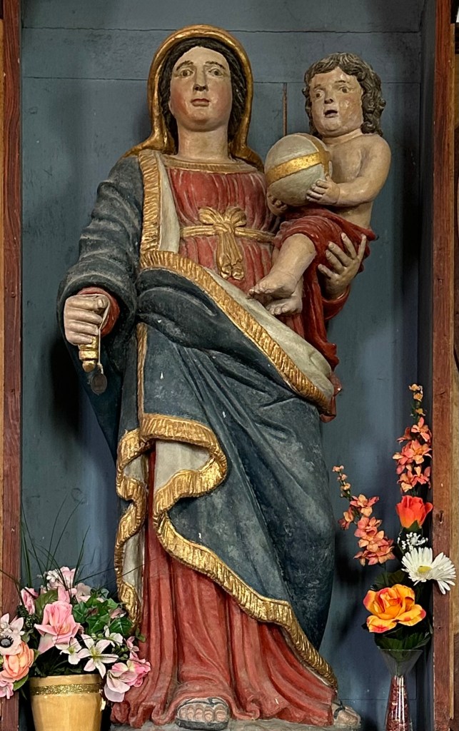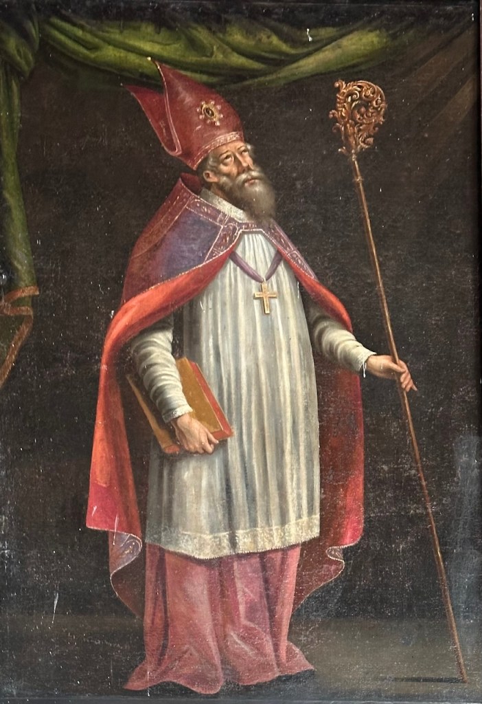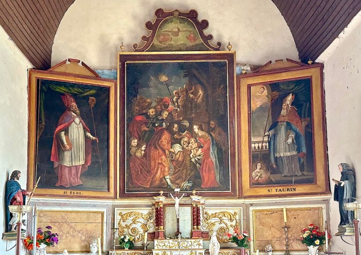 Bien que l’église soit sous le vocable de saint Taurin, c’est saint Eloi qui se trouve à gauche du retable, c’est-à-dire à la place réservée normalement au saint patron de l’église. Serait-ce parce que saint Eloi, évêque de Noyon au VIIe siècle, est vénéré comme patron des maréchaux-ferrants et des chevaux? On aime cette explication humblement pragmatique et locale. De nombreuses bénédictions de chevaux ou de troupeaux avaient lieu le jour de sa fête (1er décembre).